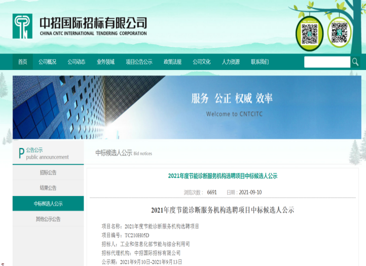 9月10日,公司通過(guò)工業(yè)和信息化部節(jié)能與綜合利用司的采購(gòu)招標(biāo)程序,順利中標(biāo)“2021年度節(jié)能診斷服務(wù)機(jī)構(gòu)選聘項(xiàng)目”。這是繼2019、2020年之后,第三次中標(biāo)年度節(jié)能診斷服務(wù)機(jī)構(gòu)選聘項(xiàng)目,我公司已累計(jì)為21家工業(yè)企業(yè)提供公益性節(jié)能診斷服務(wù)。