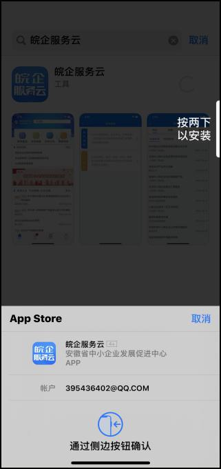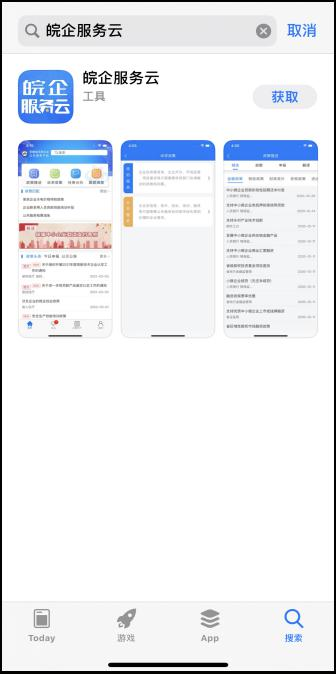 2、蘋果手機用戶在 APP Store 里搜索“皖企服務云” 并點擊“獲取”下載安裝;