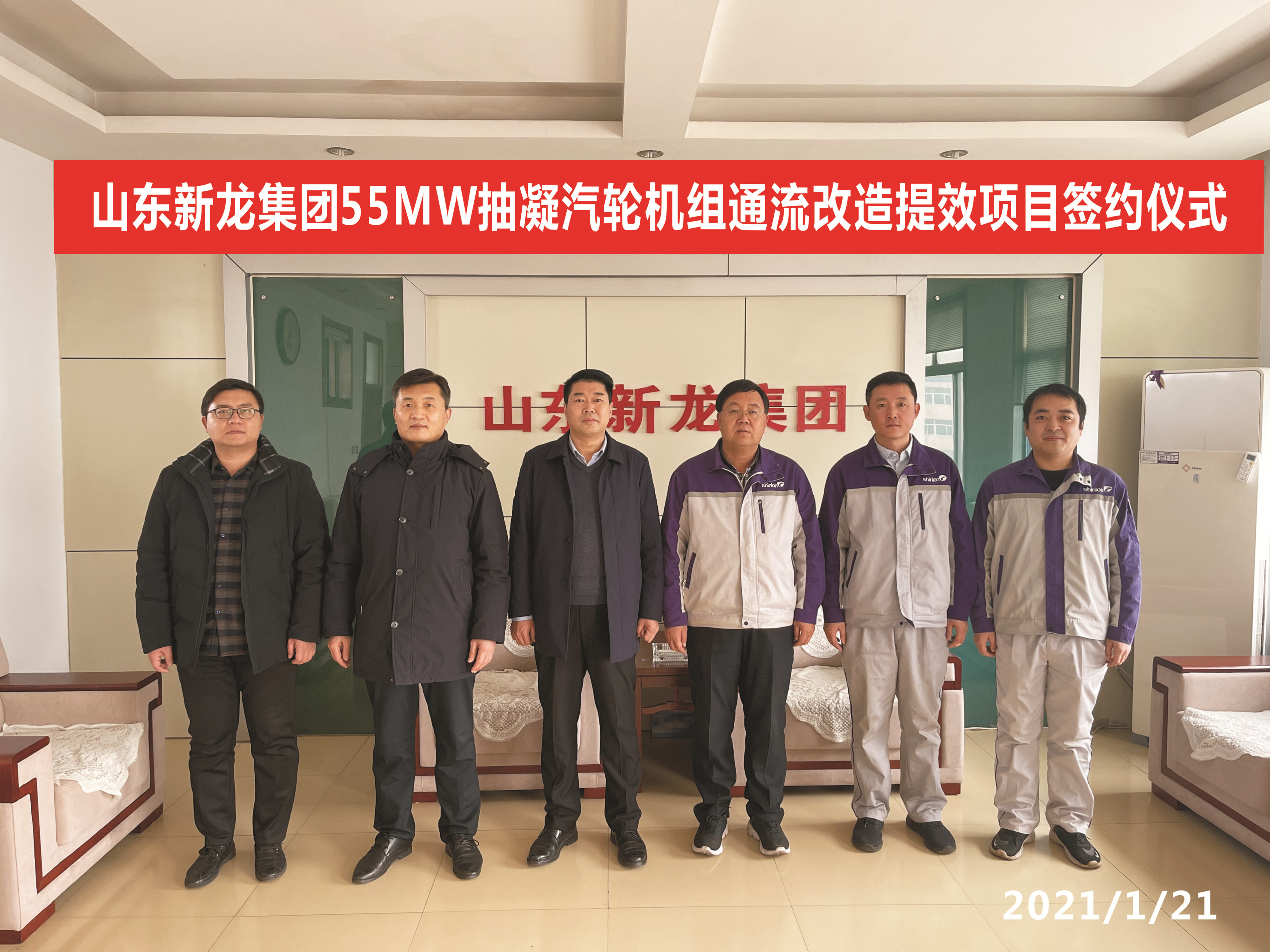 2021年1月21日,經(jīng)長期跟進(jìn)和客戶信任,我公司安徽譽(yù)特雙節(jié)能技術(shù)有限公司,順利簽定中國民企五百強(qiáng)企業(yè)——山東新龍集團(tuán)有限公司55MW抽凝式汽輪機(jī)組通流結(jié)構(gòu)綜合技改增效技術(shù)服務(wù)項(xiàng)目,合同額度逾千萬元,由我公司以技術(shù)服務(wù)的方式進(jìn)行技改增效實(shí)施。