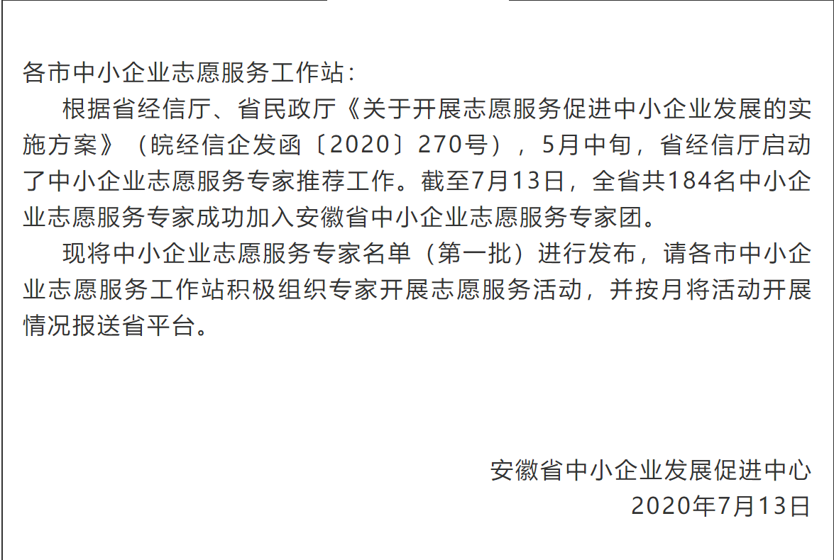 熱烈祝賀公司總經(jīng)理袁克同志成功加入安徽省中小企業(yè)志愿服務(wù)專家團(tuán)