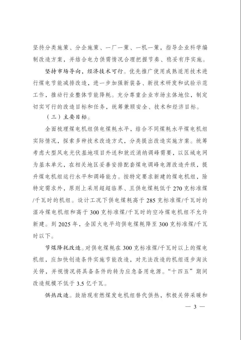 到2025年,全國火電平均供電煤耗降至300克標(biāo)準(zhǔn)煤/千瓦時(shí)以下。對供電煤耗在300克標(biāo)準(zhǔn)煤/千瓦時(shí)以上的煤電機(jī)組,應(yīng)加快創(chuàng)造條件實(shí)施節(jié)能改造,對無法改造的機(jī)組逐步淘汰關(guān)停,并視情況將具備條件的轉(zhuǎn)為應(yīng)急備用電源。“十四五”期間改造規(guī)模不低于3.5億千瓦。