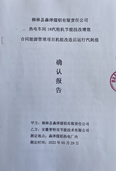 我公司以合同能源管理模式,全額投資實施的山西森澤煤鋁集團12MW背壓1#機組節(jié)能技改提效合同能源管理項目,自2022年5月19日開機沖轉(zhuǎn)成功并網(wǎng)以來,機組各項參數(shù)指標(biāo)均正常、穩(wěn)定。項目于5月29日順利通過工程驗收,實測同等工況條件下,節(jié)能提效比例達34.1%,遠超合同約定的30.7%考核指標(biāo)。