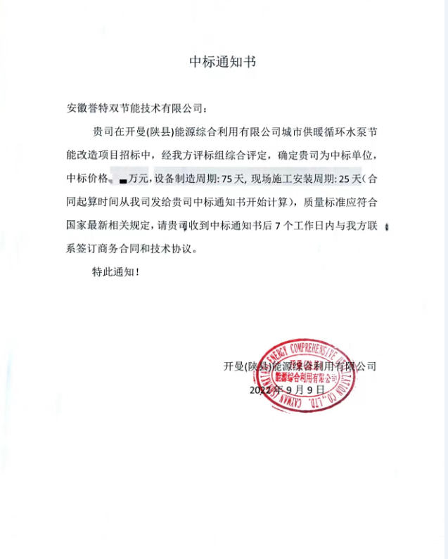 近日,公司中標(biāo)中國五百強(qiáng)企業(yè)杭州錦江集團(tuán)開曼能源3.15MW熱網(wǎng)循環(huán)泵蒸汽拖動節(jié)能改造項(xiàng)目。