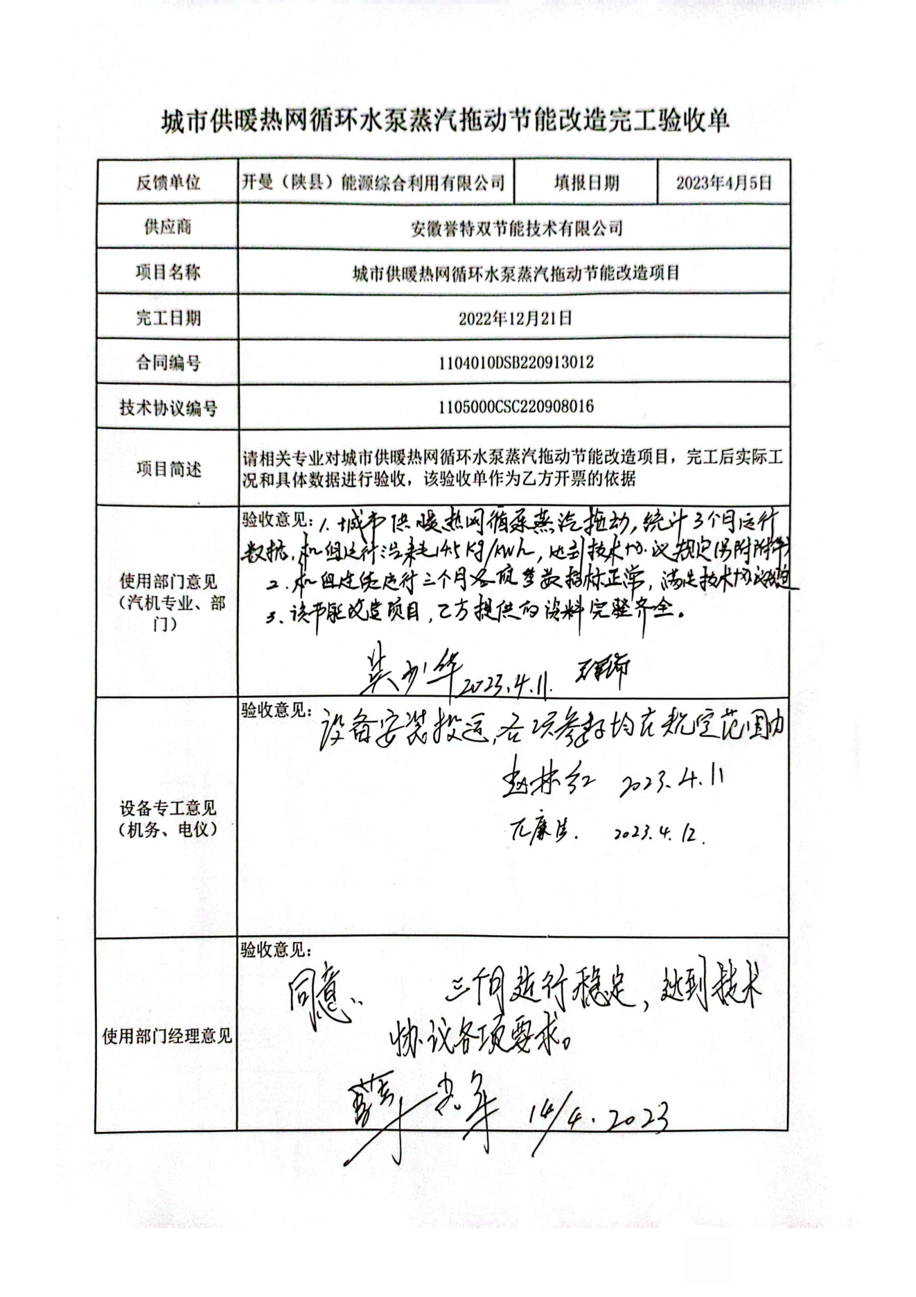 錦江集團(tuán)三門峽開(kāi)曼能源3.15MW城市供暖熱網(wǎng)循環(huán)水泵蒸汽背壓拖動(dòng)節(jié)能改造項(xiàng)目順利通過(guò)工程驗(yàn)收